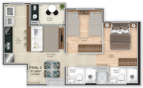 2 ou 3 dormitórios